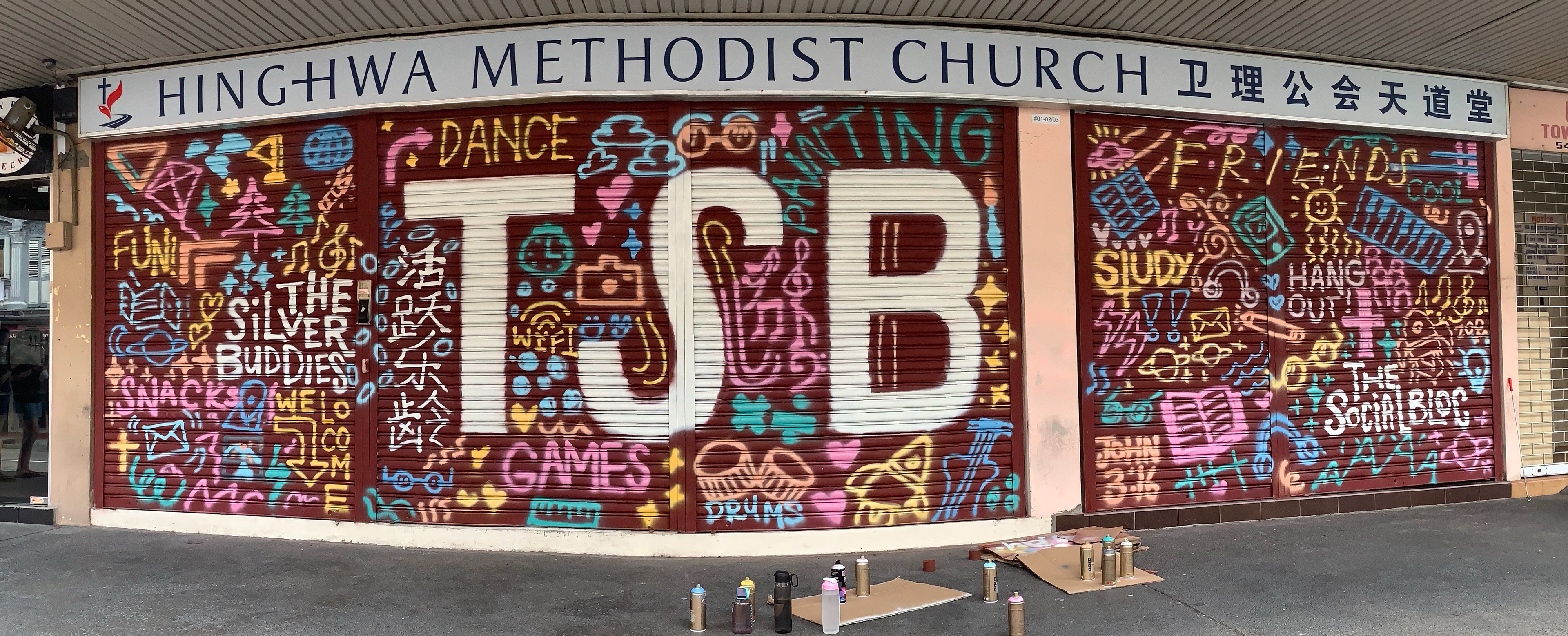 Doodle mural for @thesocialbloc youth at Hinghwa Methodist Church